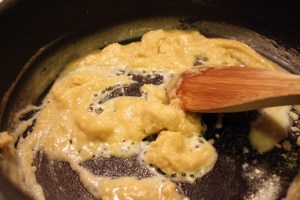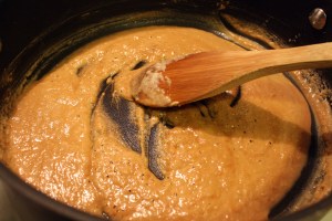 Melt the butter in a large Dutch oven or deep skillet set over medium heat.  Add the flour and stir continuously to make roux.  Stir the roux over medium heat until the color of peanut butter, 5 to 7 minutes.