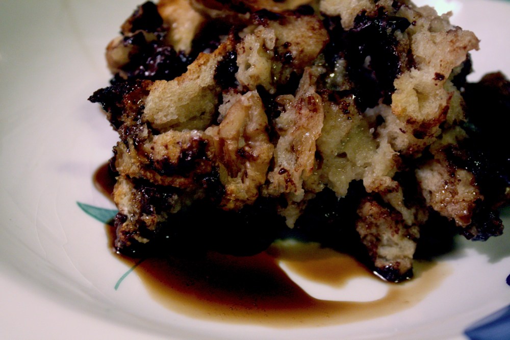 Chocolate Chip Bread Pudding with Guinness Syrup