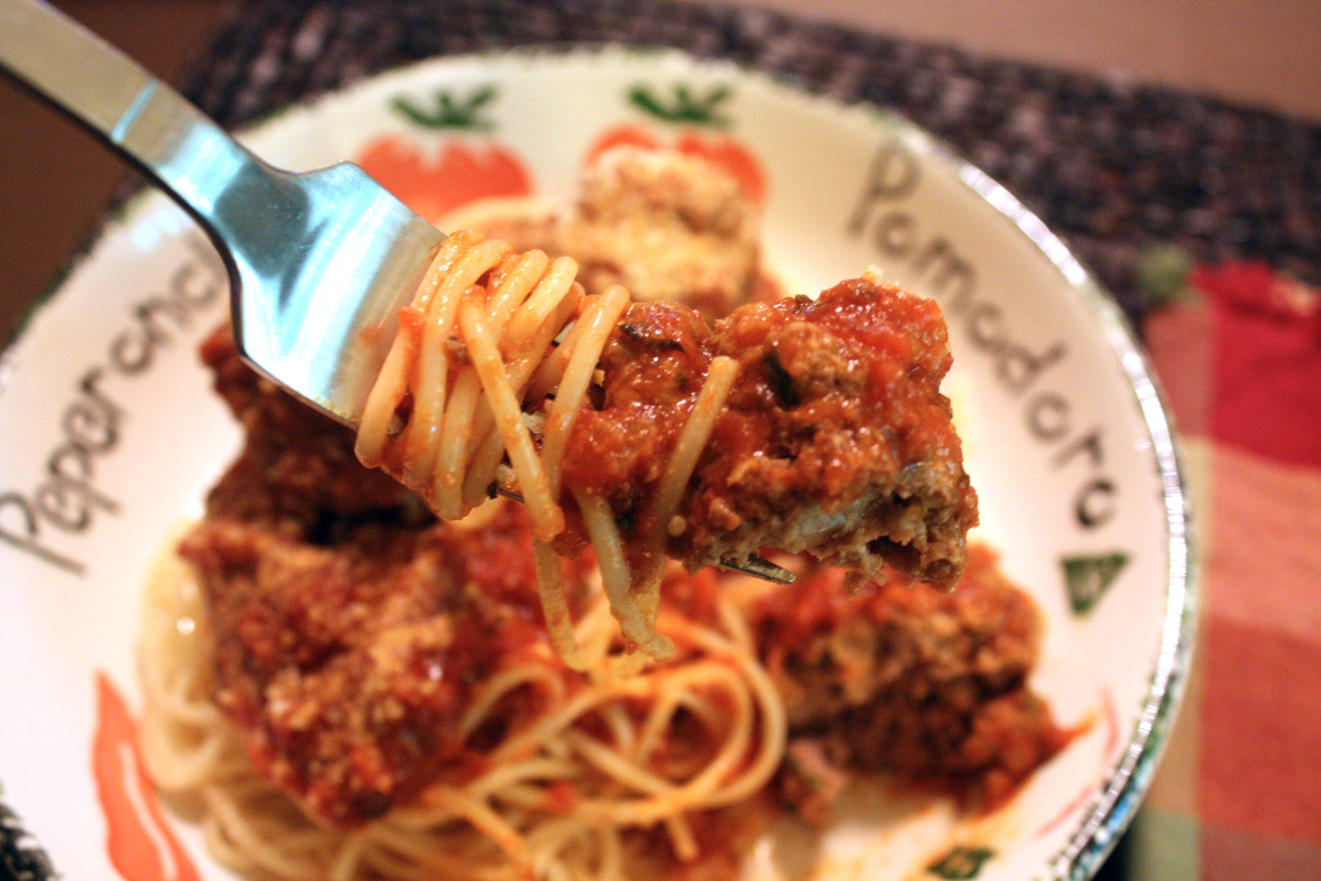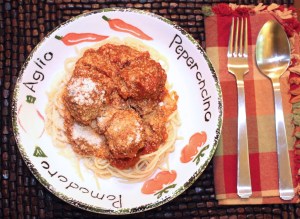 I stopped at the grocery on my way home the other night to pick up a few things to make pizza (from my previous post) and a young guy, probably in his early 20s, stopped me to ask if I could give him a few tips. His girlfriend was having a rough day at work and he wanted to surprise her with dinner and flowers. He figured by looking at the items in my cart (lobster tails, goat cheese, San Marzano tomatoes) that I’d be able to guide him in the right direction. On his menu: spaghetti and meatballs.