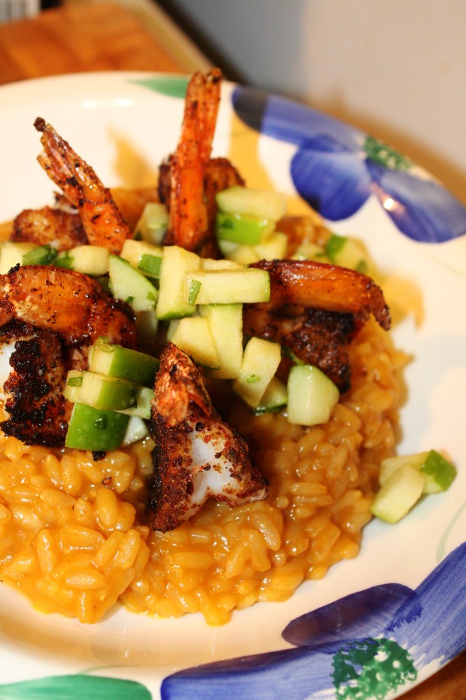 Pumpkin Risotto with Blacked Shrimp and Apple Ginger Tarragon Salsa