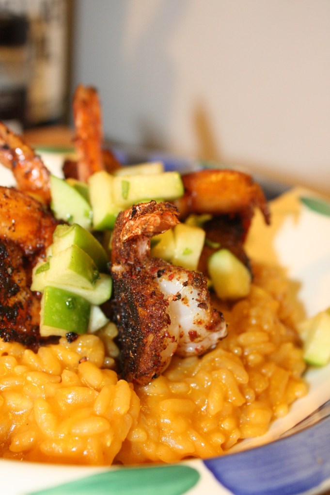 I’m making it my mission over the next few weeks to expand the horizons of Peter, Peter Pumpkin Eater. I wonder what he would think of my first creation…Pumpkin Risotto with Blackened Shrimp and Apple Ginger Tarragon Salsa. Eat that Peter!